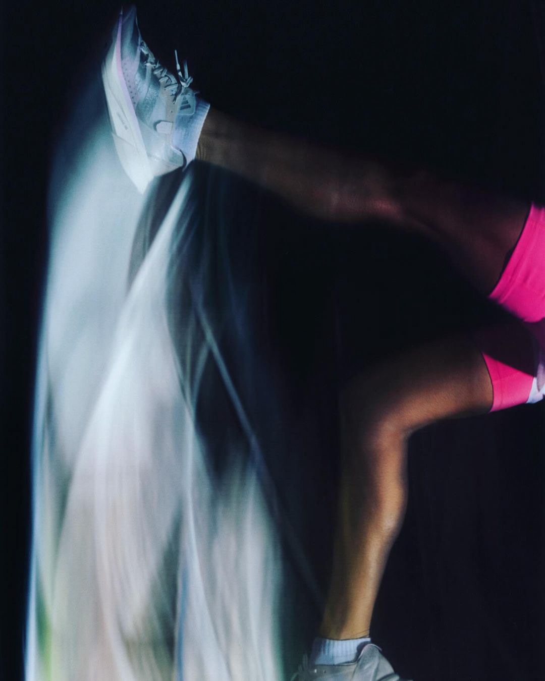 We wanted to push new ways to film and photograph running, breaking away from the expected art directions. We experimented with different in-camera visual techniques and also different textural ways we can explore imagery